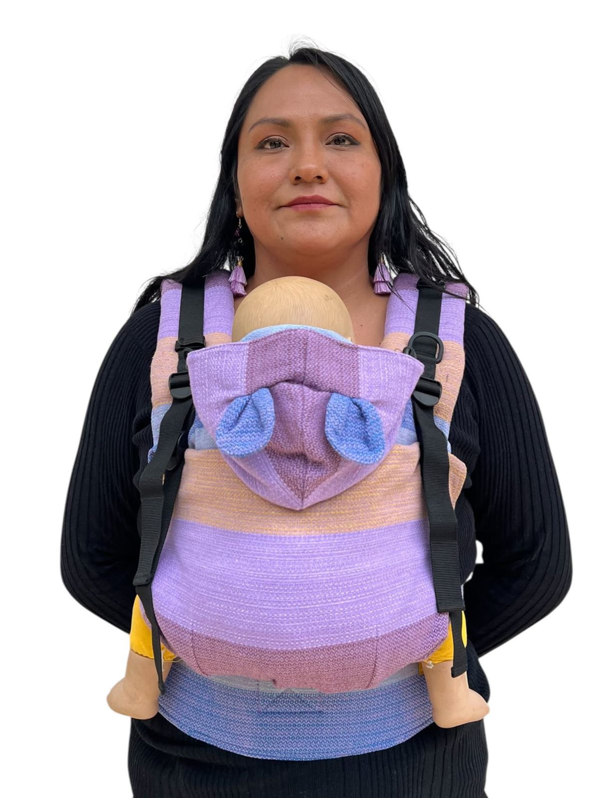 Hecha completamente de fular tejido, se adapta al crecimiento de tu bebé y al cuerpo del porteador. Con ajustes ergonómicos, tirantes suaves y gorro desmontable, ofrece confort, cercanía y libertad desde los 2 meses hasta los 2 años y medio.